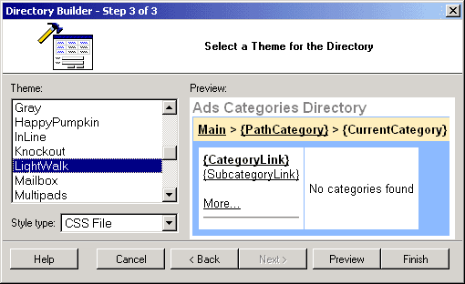 CodeCharge StudioThe Directory Builder allows you to build multi-level category trees. The Category List can be displayed in two or more columns. To begin the process of creating a Directory component, click on the Directory Builder option in Builders tab of the Toolbox.