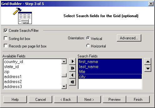 | Fields for the Grid | These are the fields to be shown in the grid. They are selected from among the Available Fields. |