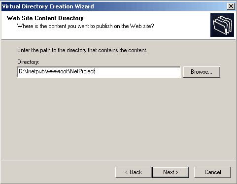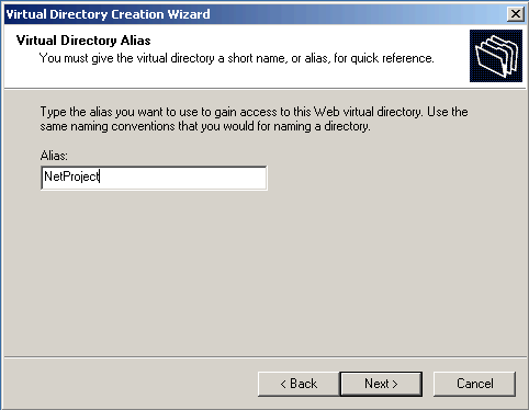 virtual folder. From the alias (i.e., NetProject) is assigned to the appropriate path parameters in the settings.
