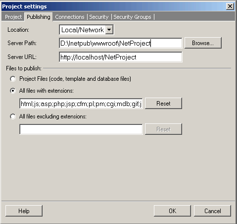 Once you setup the virtual directory, open the Project Settings dialog within CodeCharge Studio and under the Publishing tab, specify the