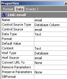 Form controls are represented within the HTML page by the standard HTML tags except for their dynamic parts that are represented by special tags utilized by CodeCharge Studio and replaced with the dynamic content during run-time. For example the link control may look as follows within the HTML: