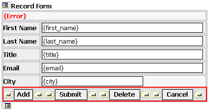 For each of the operations that a record form can perform (Insert, Update, Delete), there is a corresponding button which is used to initiate the operation.