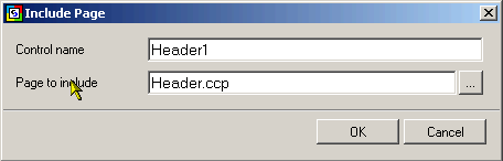 The dialog will appear so that you can select the page to be included. You can assign a name for the include page control object that is used for reference purposes within the site code.