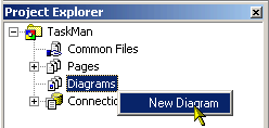 CodeCharge StudioA site diagram is a visual representation of all or some of the pages within a project. A site diagram could also be thought of as a map of the pages within a project as well as the links which join the pages. To create a new site diagram you can use the Project | Add Diagram menu option or right click on the Diagrams option in the Project Explorer and select New Diagram.
