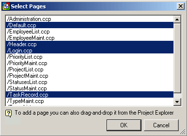 To select a page, simply click on it. To select multiple pages, hold down the Ctrl key while you click on each of the pages. You can also select a range of pages by clicking on the first page then holding down the Shift key while clicking on the last page in the range. Once you have selected all of the pages, click OK to create the diagram.