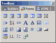 Form controls are database-aware (data-bound) and are often used within forms. They can also be referred to as dynamic controls. Form controls can be added to the page from the "Forms" tab in the Toolbox: