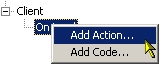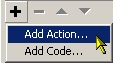 Actions are added via the events listed under the Events tab of the Properties window.
