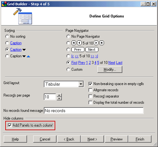The Grid Builder contains an option that automatically places all grid columns within panels for programmatic visibility control.