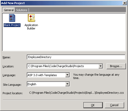 - In the Add New Project window, set the Name property to EmployeeDirectory.