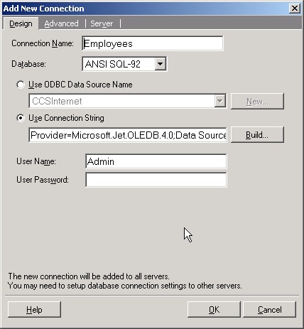 - Click on the Server tab to create the server connection.