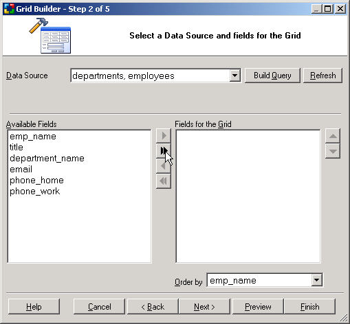 Select Database Fields for the Grid Data Source