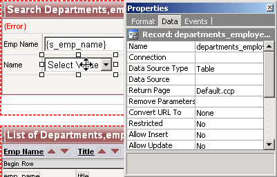 - List Data Source: The table, view or SQL query to be used to retrieve database records for the ListBox. (departments)
