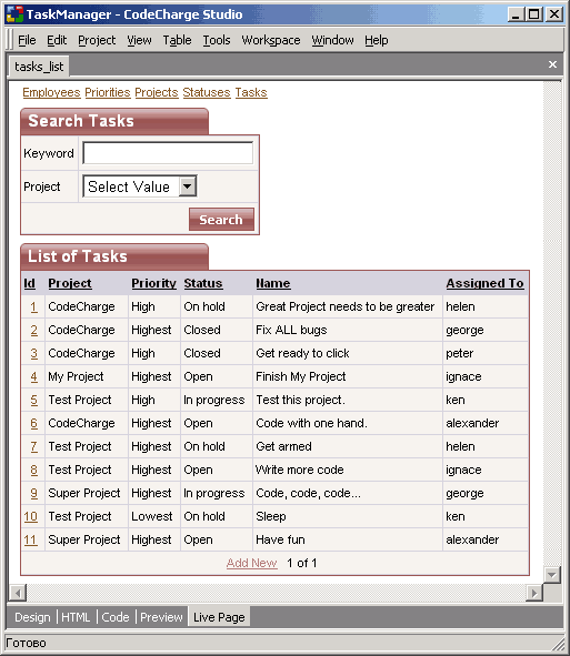 CodeCharge Studio's interface and many of its features. Refer to the rest