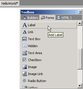 We shall now proceed to add the Label control to the page. In doing this, we shall mainly work in Design mode although it is also possible to perform the same tasks from within HTML mode.