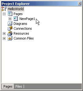CodeCharge Studio creates a project which has a single empty page called NewPage1. Our first task within the project will be to rename the page and assign it a more meaningful name.