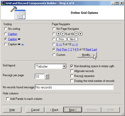 | Page Navigator | Select the type of navigation controls that you want to have in the grid. |