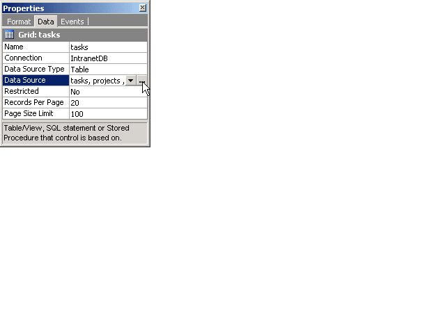 - Data Source Type: In the Visual Query Builder window set the Data Source Type property to Table, Procedure or SQL.
