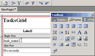 - After you add columns to the table you can also add more controls from the Forms tab of the Toolbox.