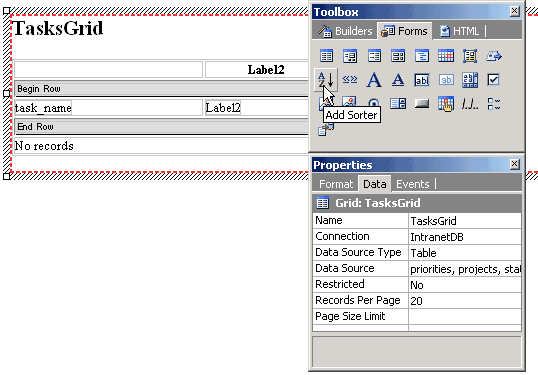 - Use the Sorter option under the Forms tab of the Toolbox to add the sorter.