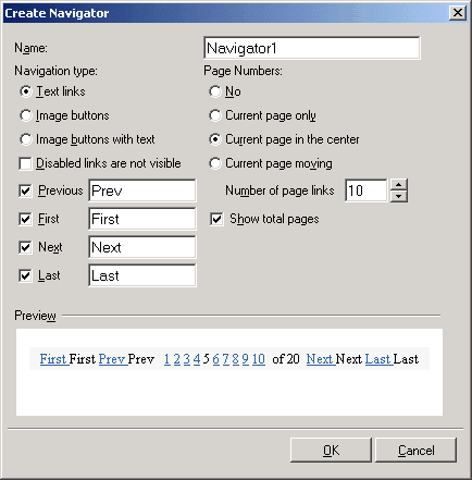 - When the Create Navigator dialog appears configure the options for the new navigator.