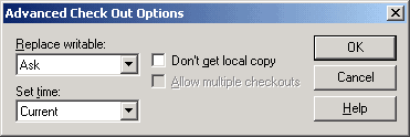 | Don't get local copy | Prevents check out operation from getting the most recent version from server. |