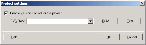 It includes the same options as D2c Project Settings/Source Control dialog with CVS provider selected. CVS Root for connecting the repository can by typed in the combo box or new CVS Root can be built using Build... button. Test button can be used to check if the connection succeeds.