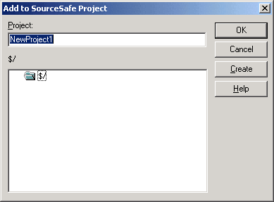 - After successful connection to Visual SourceSafe repository module/folder choosing Add to SourceSafe Project dialog is displayed. If a folder has already been created for newly created CodeCharge Studio 3 project it should be selected in the folders tree clearing the Project textbox used for specifying new folder name. If folder has not been created, parent folder should be selected in the folders tree and the name should be provided in the Project textbox. New folder is created after clicking Create button (without closing the dialog) or after clicking OK button confirming selection.