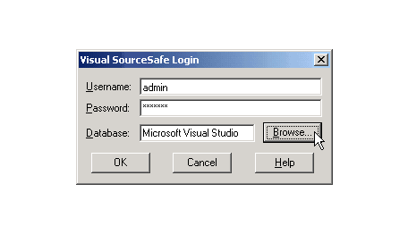 To specify a new database click Browse... and choose srcsafe.ini file location for