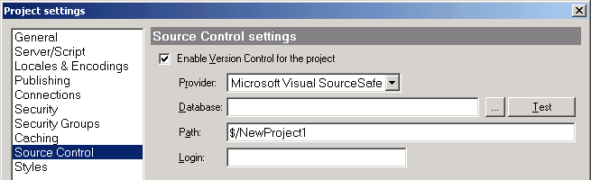 Upon checking Enable Version Control for the project checkbox and choosing Microsoft Visual SourceSafe in the Provider list-box the following configuration options are available to configure Visual SourceSafe access: