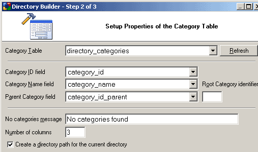 The Directory Builder allows you to build multi-level category trees. The Category List can be displayed in two or more columns. To begin the process of creating a Directory component, click on the Directory Builder option in Builders tab of the Toolbox.