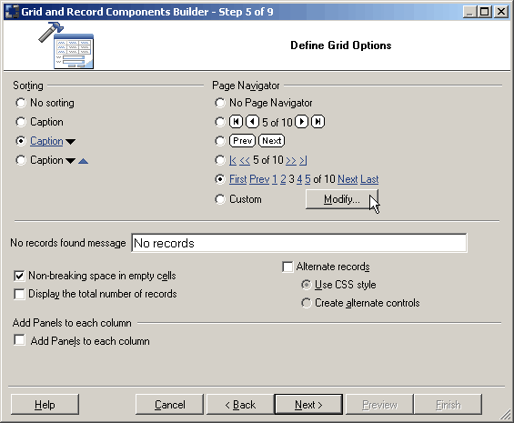 Page Navigator Select the type of navigation controls that you want to have in the grid.