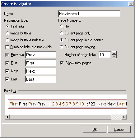 First, Prev, Next, Last Activate the corresponding checkbox if you want to have a link for the option in the navigator.