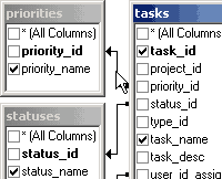 The Visual Query Builder enables your to visually select fields from multiple database tables. You do not have to worry about constructing the SQL statement since the Visual Query Builder does this automatically.