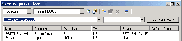 | Add a stored procedure parameter. Please refer to the section on Using the Stored Procedure Parameter window for more information. | |