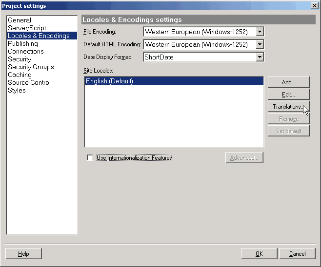 You can localize your web site at any time during the project creation by adding support for additional languages and/or countries in the "Locales & Encoding" section of the project settings. The process of creating a locale consists of the following steps (which do not need to be performed in the same order):
