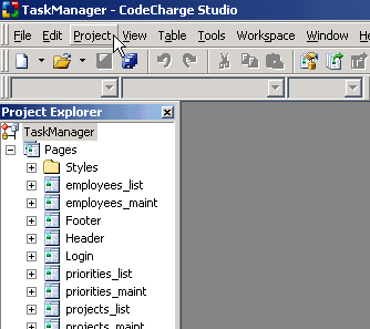 CodeCharge StudioProject settings allow you to specify how to generate your web application and where to publish it. You can also specify the programming language, publishing directory, database connection, site authentication, locales, source control settings and various additional details concerning the project's configuration.