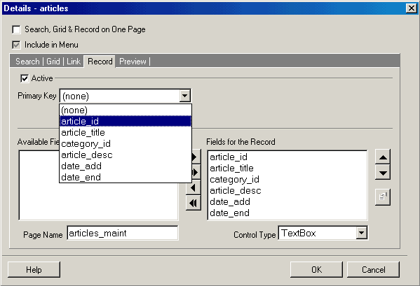 If ODBC is used, it is unable to retrieve the Primary Key for some databases. In this case please select a particular table name under the Table column, select the Primary Key field or select the field to be used as a Primary Key for the Record tab.