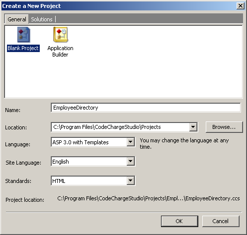 - In the Add New Project window, set the Name property to EmployeeDirectory.