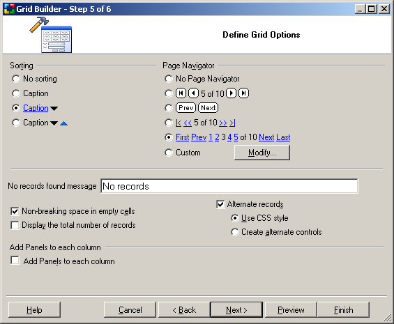 3. Specify the number of grid rows to be shown on a page, as well as the message to be displayed when no records are found.