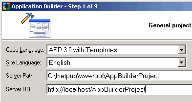The first step of the Application Builder is where you configure the project-wide settings for the following four parameters: