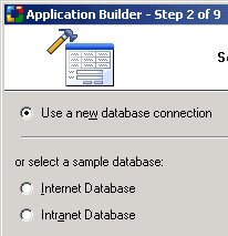 | Select a sample database connection | Select either the Internet or Intranet sample database to use for the project. |