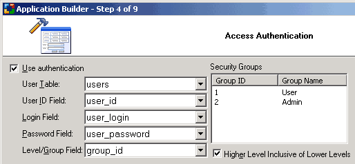 | Level/Group Field | Select the field with the user security levels. |
