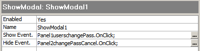 CodeCharge StudioThe Show Modal feature displays panel content in a modal window.