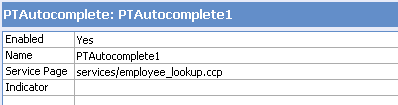 This feature is available under two names: PTAutcomplete and YahooAutocomplete, each implemented via a different AJAX library: Prototype or Yahoo UI. Each implementation differs slightly, with one of differences being how parameters are passed from the current page to a corresponding AJAX service. The PTAutcomplete feature passes the value of the current control as form parameter (POST) named the same as the current control. The YahooAutocomplete feature passes the value of the current control as URL parameter always named "query". An AJAX service can then use the appropriate parameter to retrieve matching records.